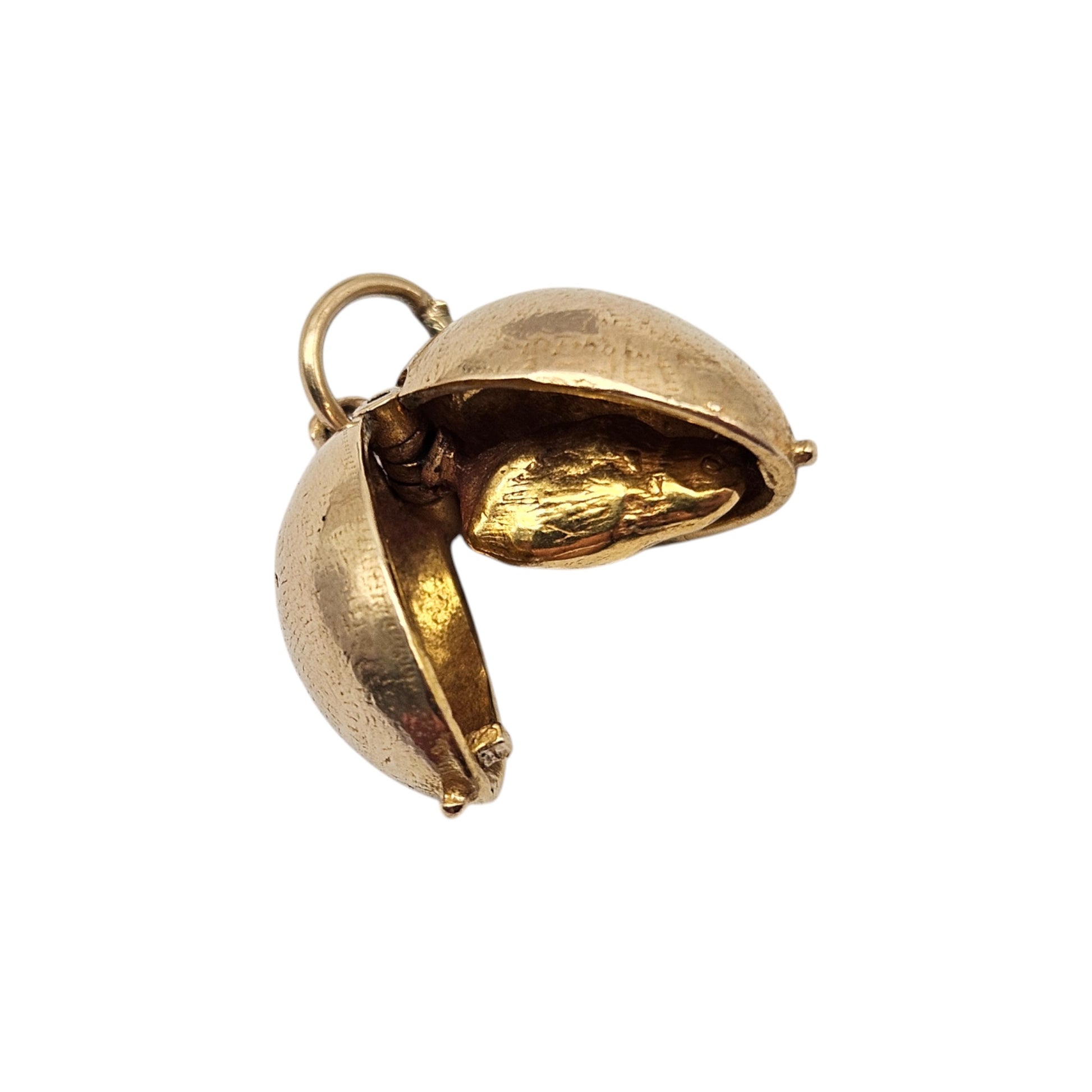 Heavy 9ct 375 Yellow Gold Chick Inside Egg Opening Charm c.1958 L 1.5 cm 6.2 g.