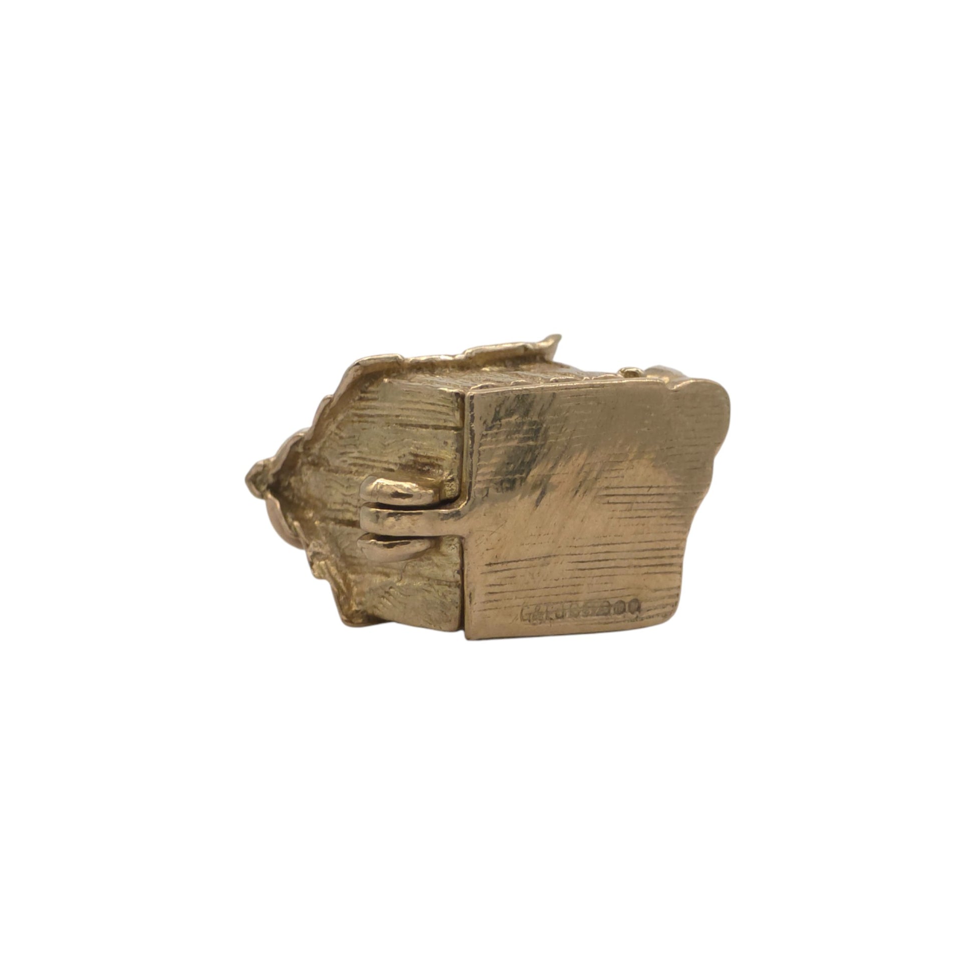 Heavy 9ct 375 Yellow Gold Dog In Kennel Opening Charm 1967 L 1.7 cm 6.0 g.