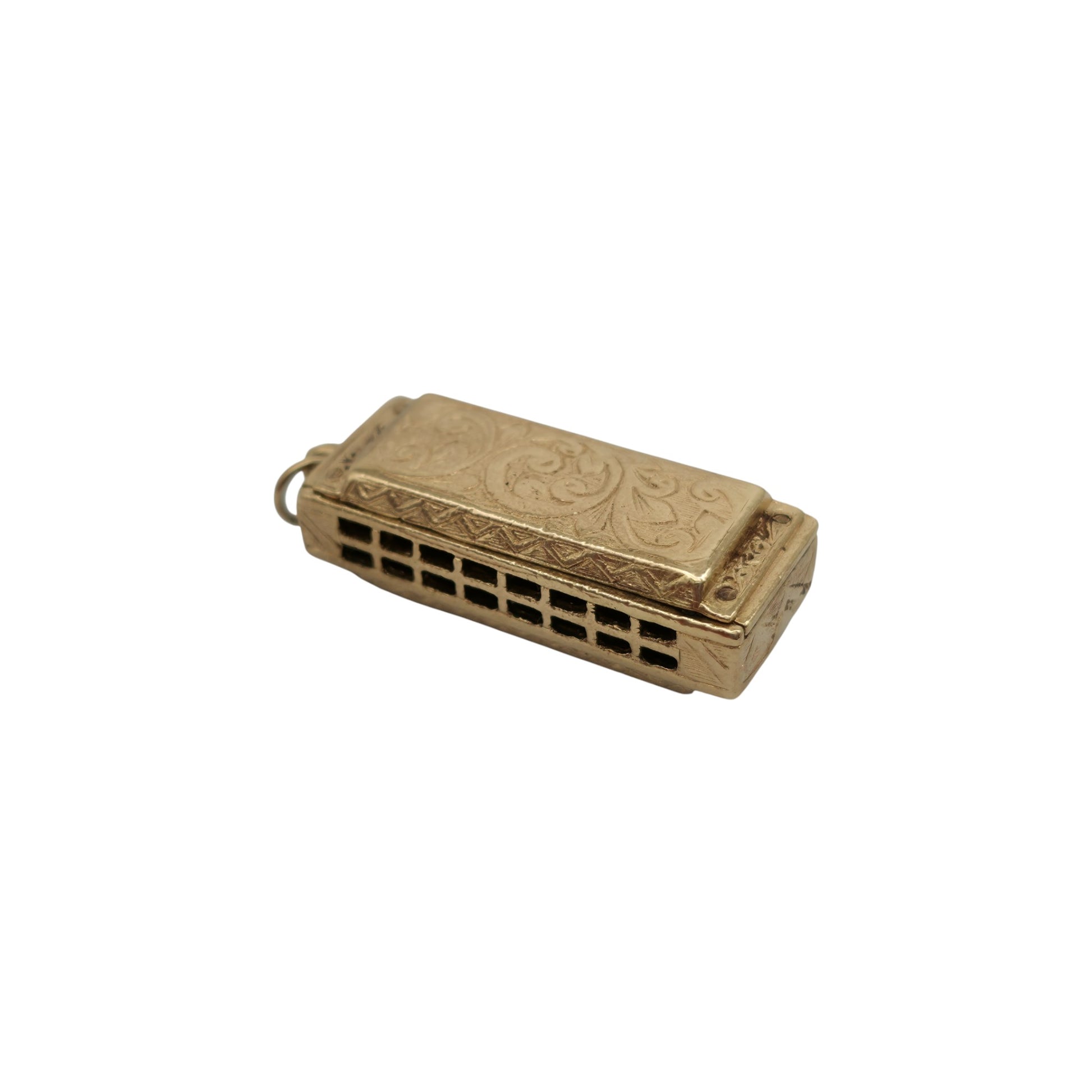 Heavy 9ct 375 Yellow Gold Harmonica Pendant 1972 L 2.9 cm 11.3 g.