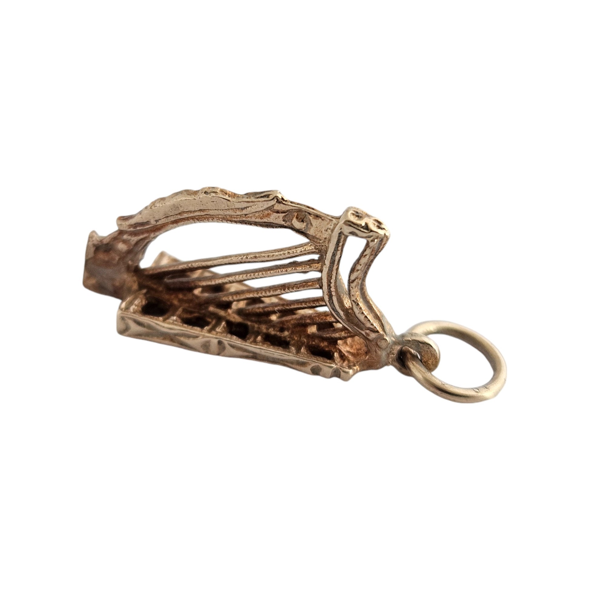 Irish 9ct 375 Yellow Gold Harp Charm c.1960's L 1.9 cm 2.0 g