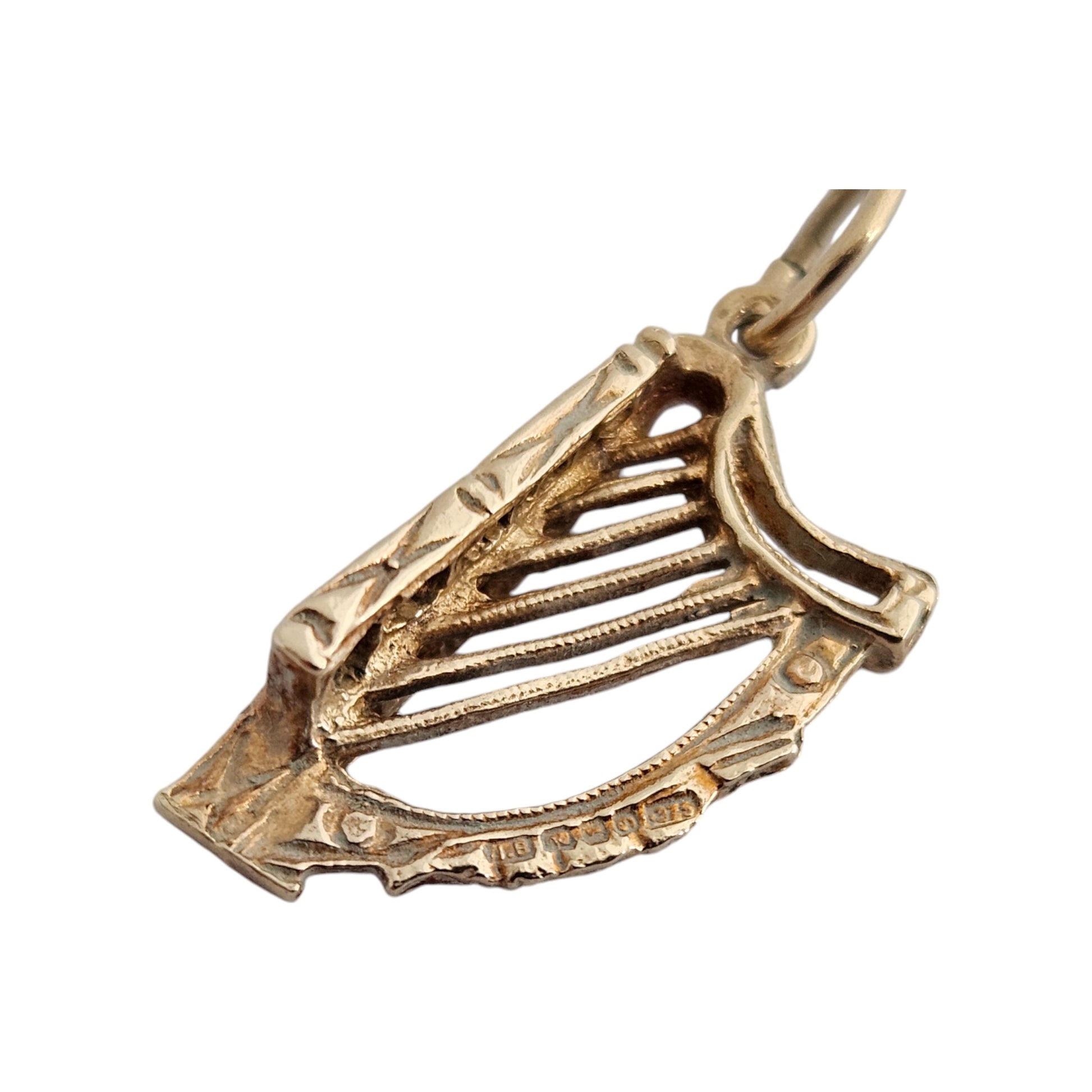 We are selling a 9ct 375 yellow gold Harp Charm with Dublin hallmarks for circa 1960's.