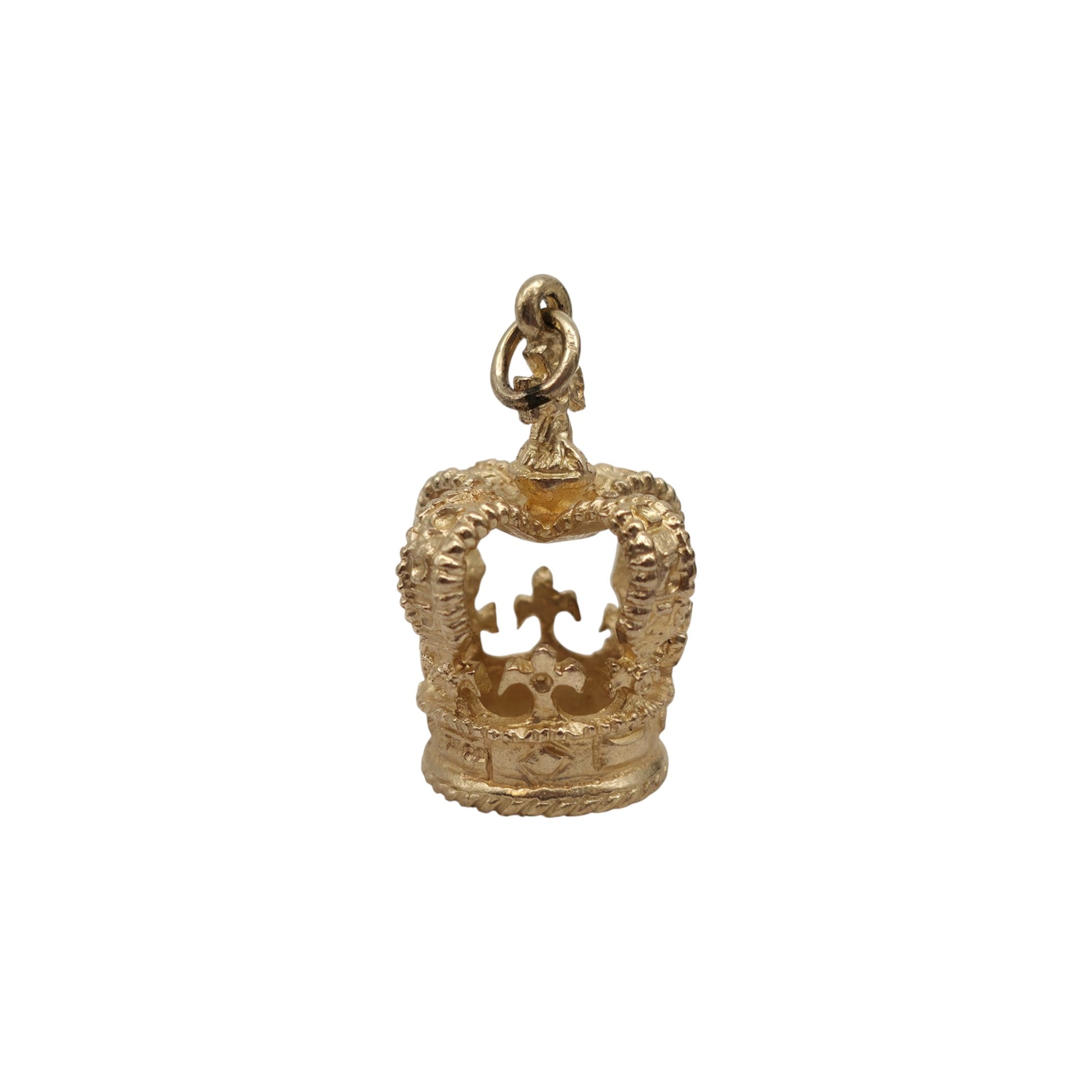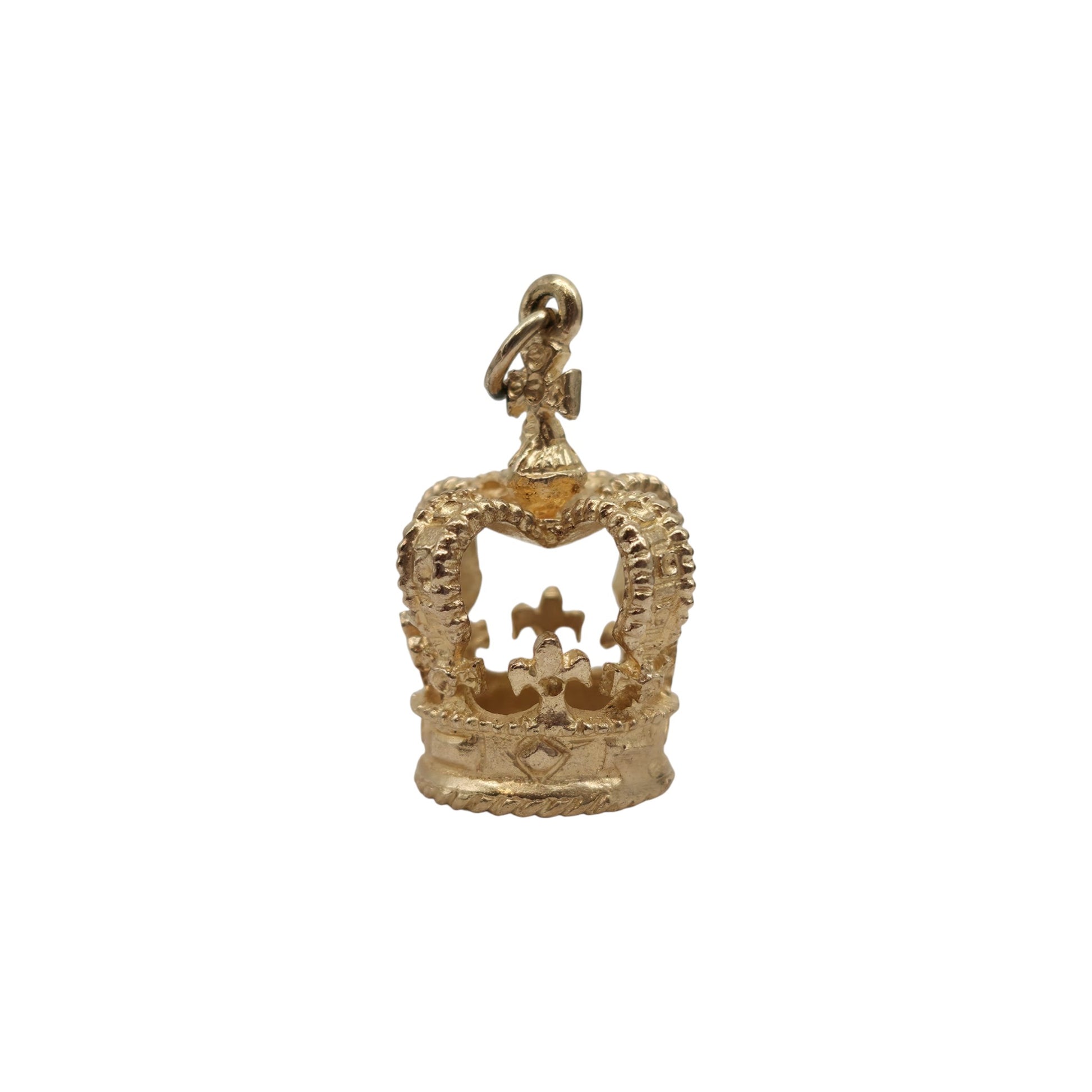 Large 9ct 375 Yellow Gold Crown Charm 1978 L 2.3 cm 6.0 g.