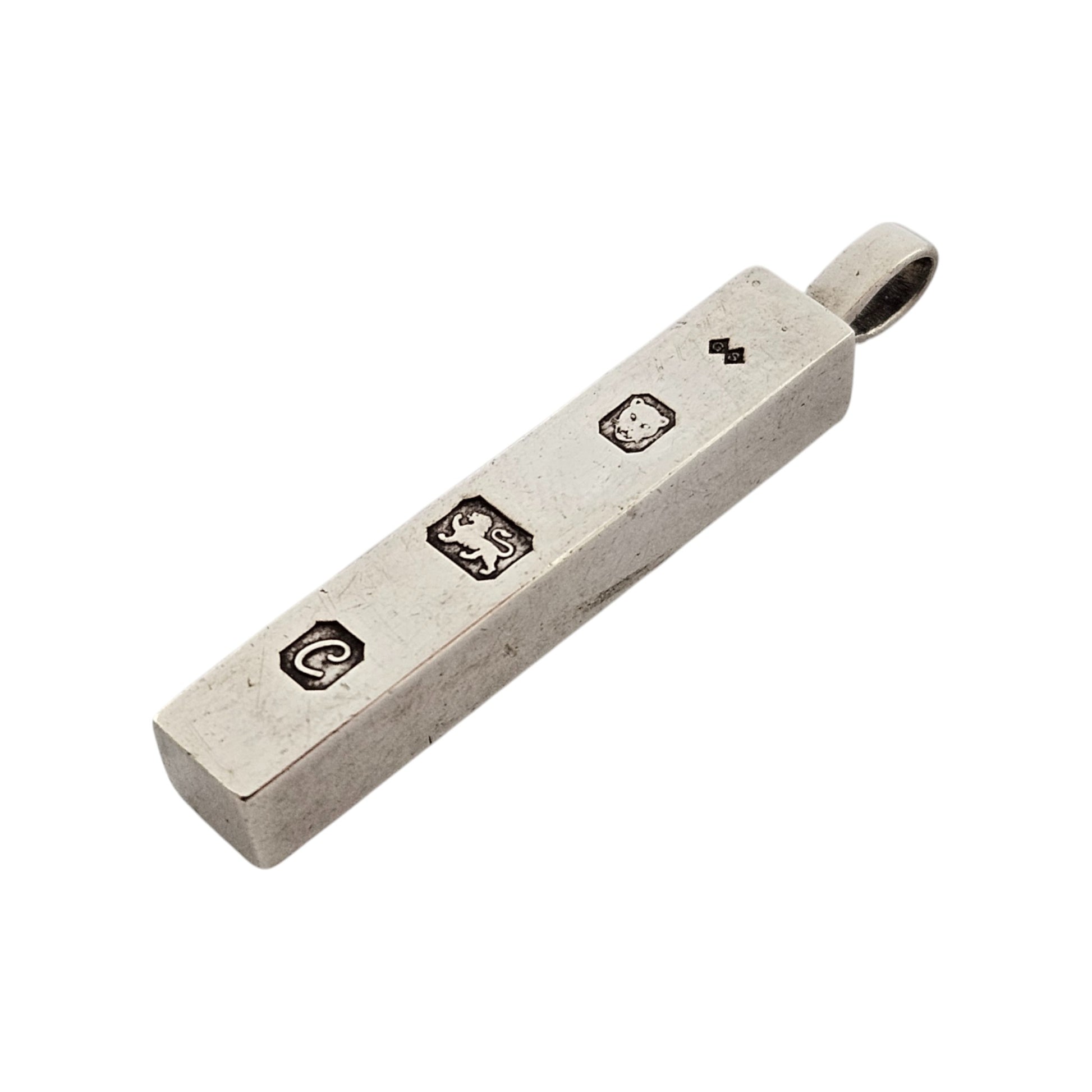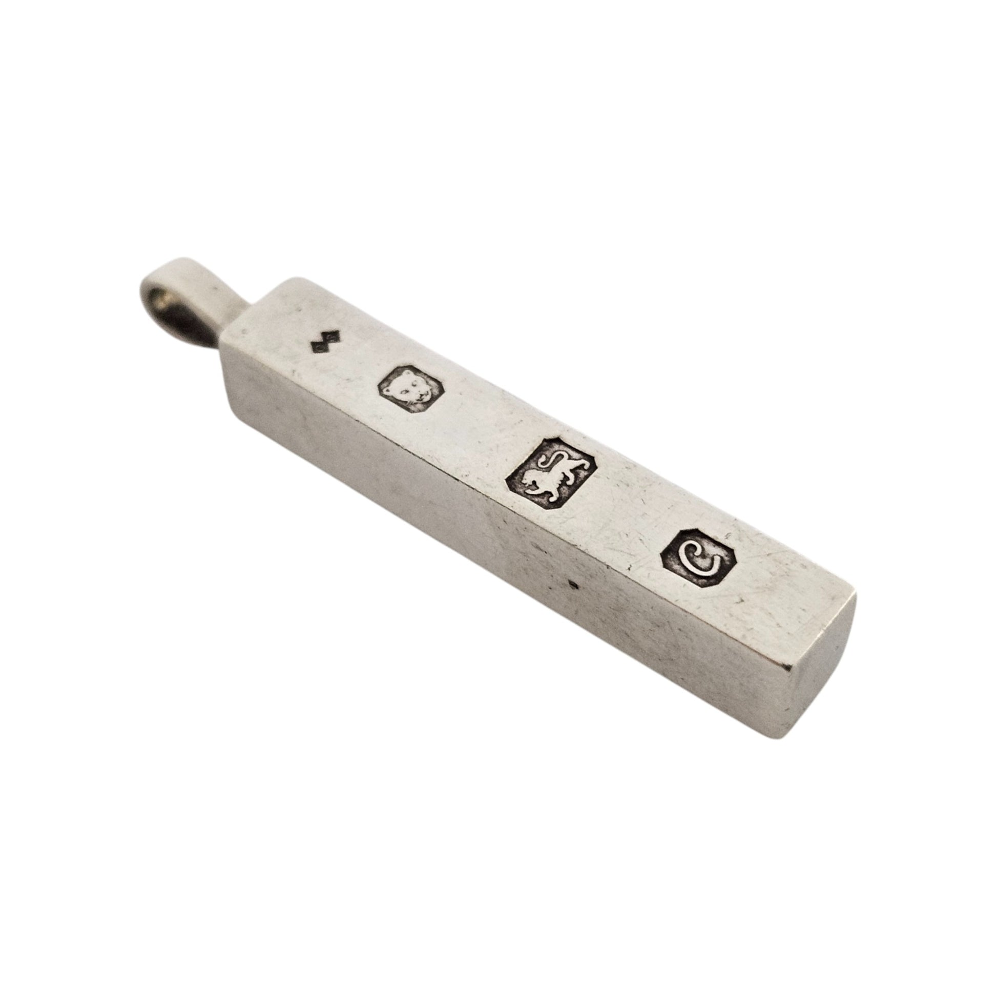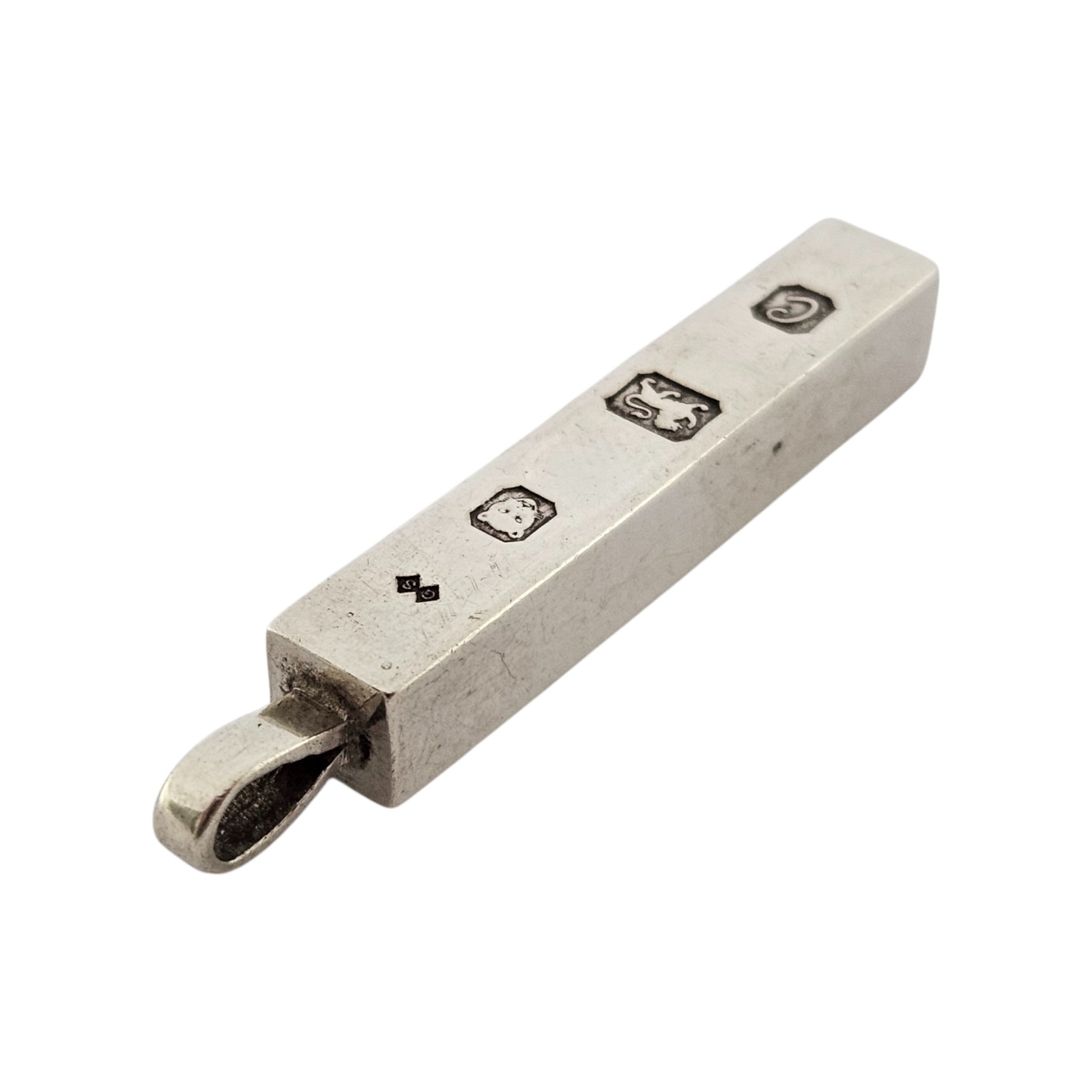 Solid Sterling Silver Ingot Pendant 1977 by GS L 3.4 cm 14 g