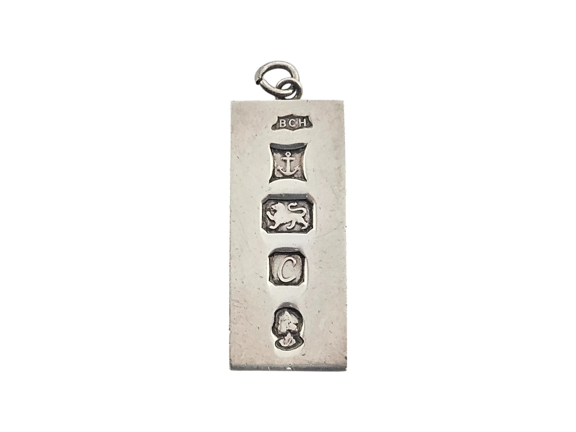Solid Sterling Silver Ingot Pendant with Jubilee Marks for 1977 L 4.2 cm 29 g